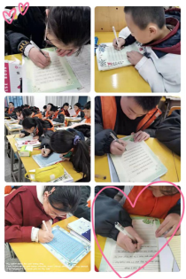 赛前,同学们都做好了充足的准备,准备了优美的信笺纸。比赛过程中,大家坐姿端正,态度认真,书写细致,展现出了自己英文书写的最高水平。所有同学都力求完美,做到了最好。各年级英语老师们也到各班同学当中给予了及时的指导,并不断鼓励同学们勇于尝试,重在参与,赛出风格,赛出水平。