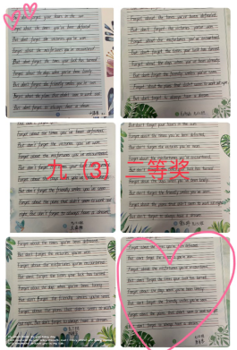 英语书写大赛在师生们的积极踊跃的参与下落下帷幕。本次活动不仅培养了学生规范书写英文的意识,还让学生体验了英语书写的乐趣,对学生养成良好的英语书写习惯起到了一定的促进作用。赣南师大附中会提供更多的平台,引领学生们爱书写,擅书写,乐书写,真正做到英语见长,书写先强。