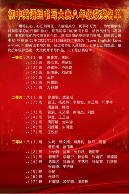 赛后,初中英语组教师们秉承公平、公正、公开的原则,经过仔细的甄选,认真的讨论,最终评选出了此次比赛的获奖作品,并对各年级各班的获奖同学进行了表彰。