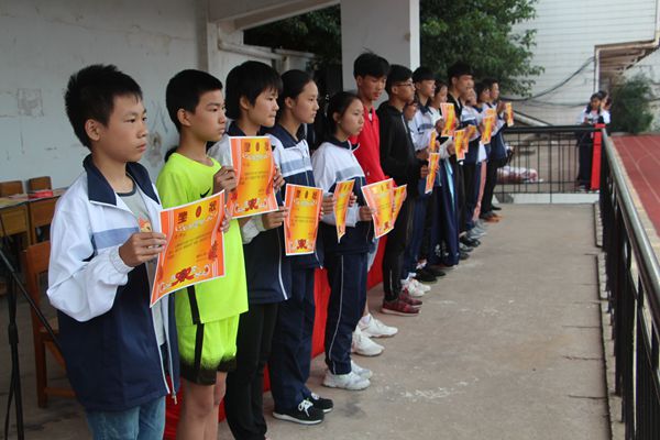 随后,邹华仙副校长宣布本届运动会获得体育道德风尚奖七(1)班等15个班级、宣传报道奖七(5)班等9个班级、跑操优胜奖七(4)班等15个班级和团体总分奖获奖24个班级。伴随着振奋人心的《运动员进行曲》,袁登骅校长为获奖班级颁发证书以及奖品,全场同学对获奖班级给予了热烈的掌声!