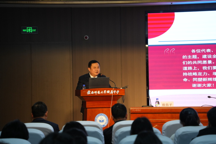 “惟其艰难,才更显勇毅;惟其笃行,才弥足珍贵。”会议最后,汪义芳校长寄语学校全体教职工:学校是我们共同的家园,发展是学校永恒的主题,建设全市一流、全省知名,有特色、高质量的师范大学附属中学是我们的共同愿景。在前进的道路上,我们要更加坚定不移沿着习近平总书记指引的正确方向前进,始终保持战略定力、增强发展信心、鼓足工作干劲,同舟共济、奋楫笃行,共担新使命、同塑新辉煌,为我们的共同理想团结奋斗!