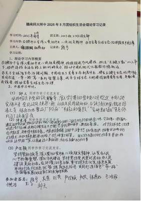 为强化团员政治素养,筑牢思想根基,近日,赣南师大附中各团支部聚焦《赣南师大附中2025年5月团组织生活会理论学习材料》,召开“贯彻中央八项规定・践行生态治理担当”专题组织生活会。活动以理论学习为核心,结合团员交流研讨,推动青年学生深刻理解党的作风建设内涵与中国全球生态治理方案的实践价值。