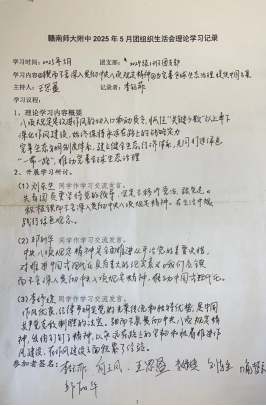 此次组织生活会通过“理论学习—交流思辨—实践导向”的闭环设计,让团员青年在深学细悟中明确责任方向。下一步,赣南师大附中团委将持续深化此类专题学习,引导青年学生以实际行动诠释“党有号召,团有行动”的政治自觉,为推进中国式现代化与全球治理变革贡献青春力量!