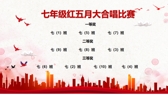 五月的校园,红歌飞扬,初心滚烫。以“五月红歌扬,初心永向党”为主题的合唱比赛在附中热烈开唱,青春与家国情怀在旋律中同频共振。此次合唱比赛,七、八年级学子用不同风格的曲目编织起对祖国的热爱图谱——既有《歌唱祖国》《我爱你中国》《我和我的祖国》等激昂旋律,让“五星红旗迎风飘扬”的自豪随歌声升腾;也有《紫荆花盛开》《在灿烂阳光下》等温润乐章,以“游子归乡的牵挂”“沐浴党恩的感恩”传递细腻家国情。《龙的传人》的豪迈、《这儿有扇窗》的清新、《五四特别版错位时空》的穿越感……少年们或铿锵有力或温柔坚定的歌声中,百年党史的波澜、新时代的朝气交织共鸣,汇成一片流动的“红色海洋”。
