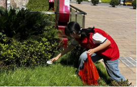 参观结束后,同学们自发组成志愿服务队,带着垃圾袋、夹子等工具,投身到博物馆周边的绿化清理志愿服务中。大家分散在草坪、灌木丛等区域,仔细排查每一处角落:有的蹲在草丛里,小心翼翼地将隐藏其中的塑料袋、废纸夹出来;有的拨开枝叶,清理缠在灌木上的塑料绳和烟头等杂物。过一番忙碌,博物馆周边的绿化带变得清爽整洁,看着焕然一新的环境,同学们露出了欣慰的笑容。