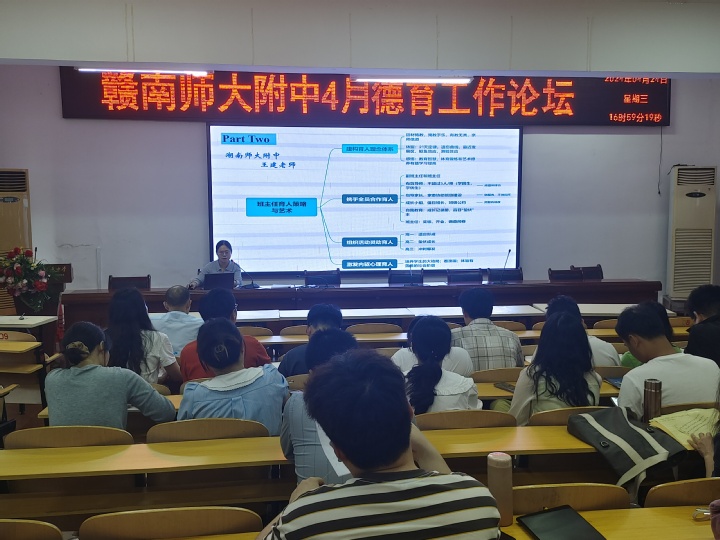 朱婷老师和李慧老师的交流与分享干货满满,赢得了在场班主任的阵阵掌声。葛主任在总结中也特别感谢了两位老师的精彩发言,同时也向大家发出号召,要知行合一,把别人成功的经验吸收好、实践好,共同努力让附中的德育工作更上一层楼。论坛最后葛主任对德育工作做相关布置,下午5:20论坛圆满落幕。