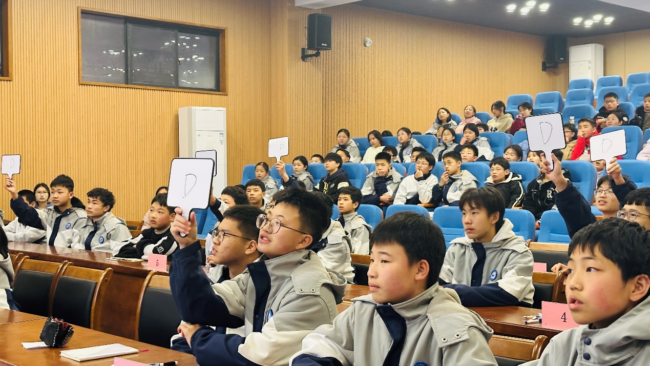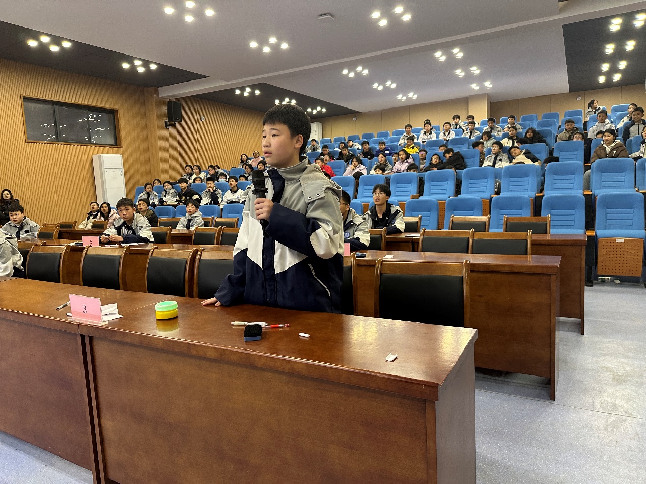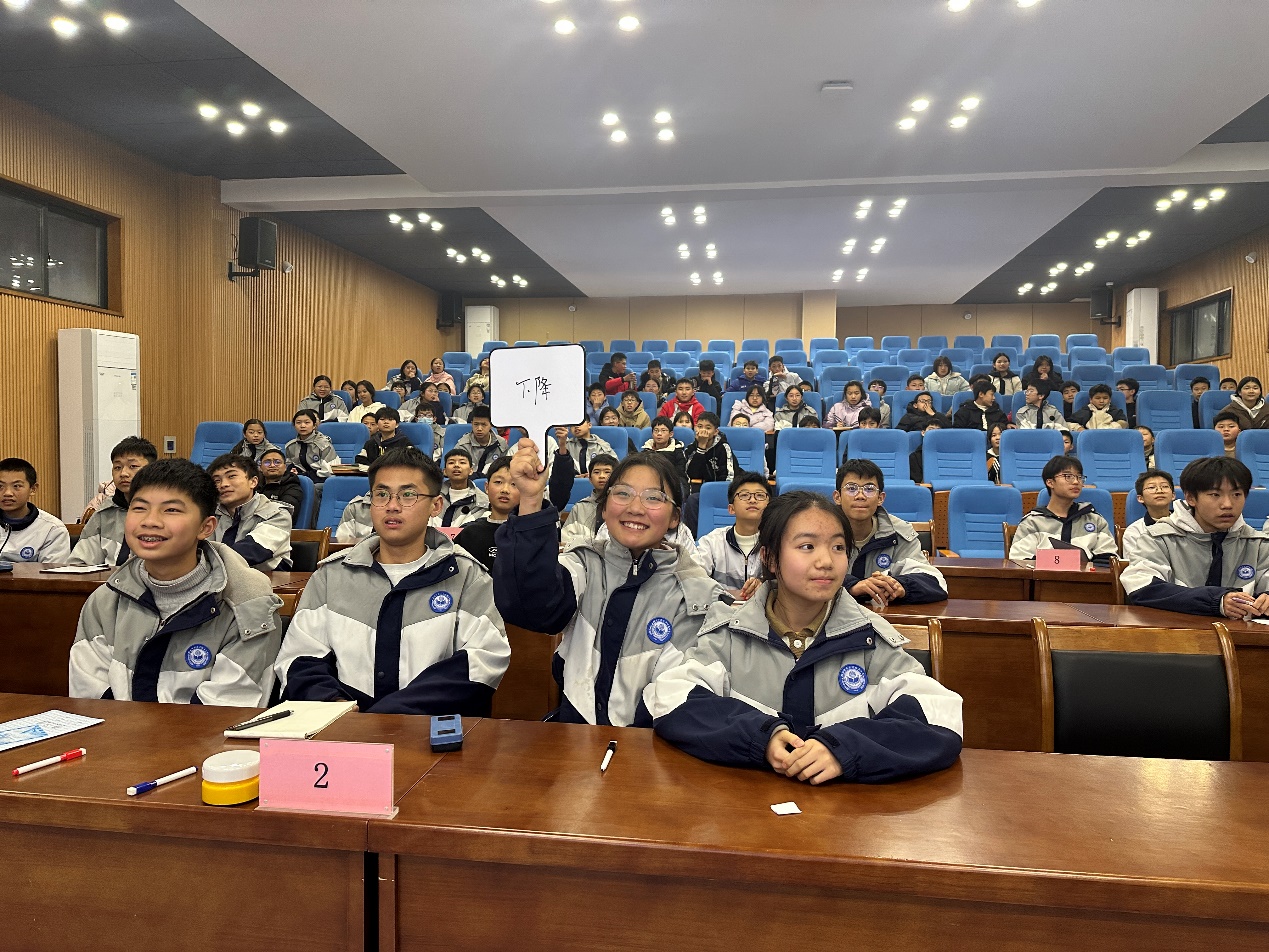 3月6日下午,赣南师范大学附属中学第二届科技节科学知识竞赛决赛在蓉江校区合班教室成功举办。本次科学知识竞赛以“探索科学奥秘,筑梦美好未来”为主题,吸引了七、八年级众多科学爱好者参与,经过激烈的初赛角逐,最终决出32名参赛选手进入决赛。比赛邀请了评委刘小平主任、刘田田老师、邱伟中老师,并由现教处黄观雁副主任致开场词。