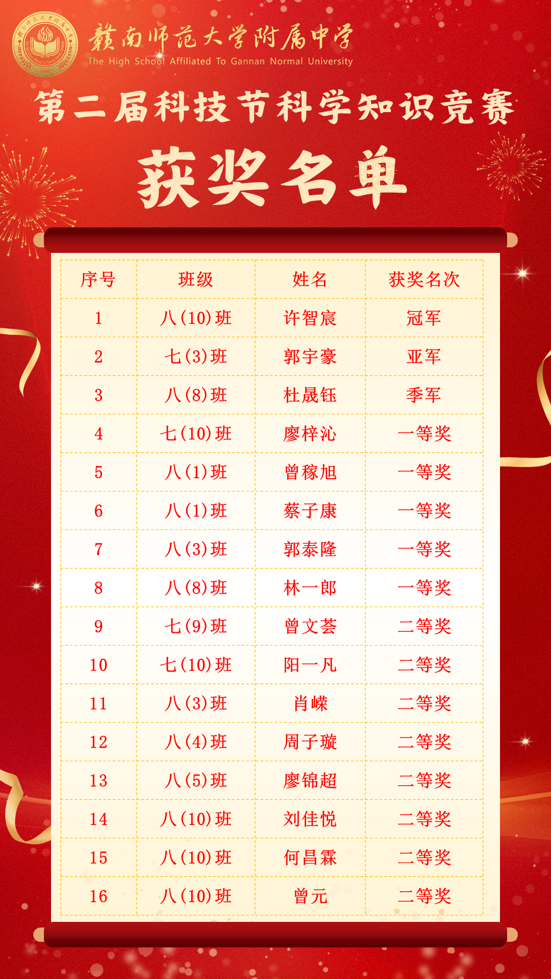 此次竞赛由学校现教处主办,通过多元化的题型和互动形式,让学生们在竞争中感受科学的魅力。未来,赣南师大附中将继续深化科技教育特色,为学生提供更多展示才华的舞台,助力青少年科技梦想扬帆起航!