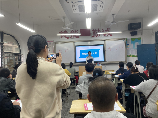 班主任介绍后,各班学生代表发言,就自身良好的学习习惯和学习方法展开分享。紧随其后家长代表交流分享,各班家长代表就自己的一些教育孩子的心得和做法诸如鼓励是最好的教育、合理安排孩子作息时间、给孩子足够的陪伴等展开交流。