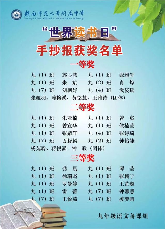 2022年4月23日是第27个世界读书日,这是一个属于全世界爱书人的节日。为营造浓郁的书香环境,让孩子们感受并喜欢阅读,激发读书的兴趣,培养良好的阅读习惯,在世界读书日到来之际,赣南师大附中九年级语文备课组组织并开展了2022年“4·23世界读书日”手抄报评比活动,学生纷纷自愿并积极参加。